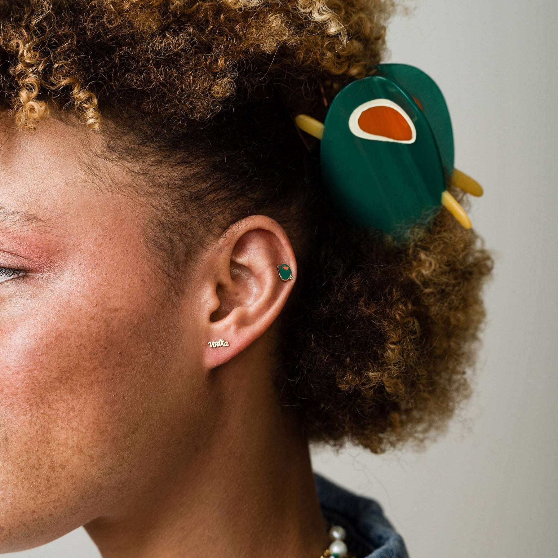 Is it a late night martini or eat some olives off your fingertips kinda evening? DETAILS - 18k gold-plated enamel stud - Gold-plated stainless steel bullet backer - Nickel-free and naturally hypoallergenic - Measures 8mm long x 8mm tall