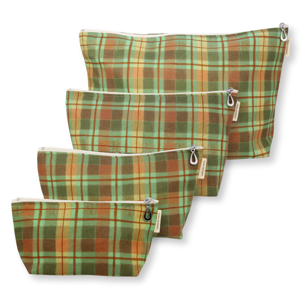 A full set of our popular Makeup Bags, plastic-lined cosmetic bags in cotton prints. The set includes one small, one medium, and one large. They can nest together. For additional sizes, look at our Dopp Kits, the XL Makeup Bag, and the cotton coin purse!