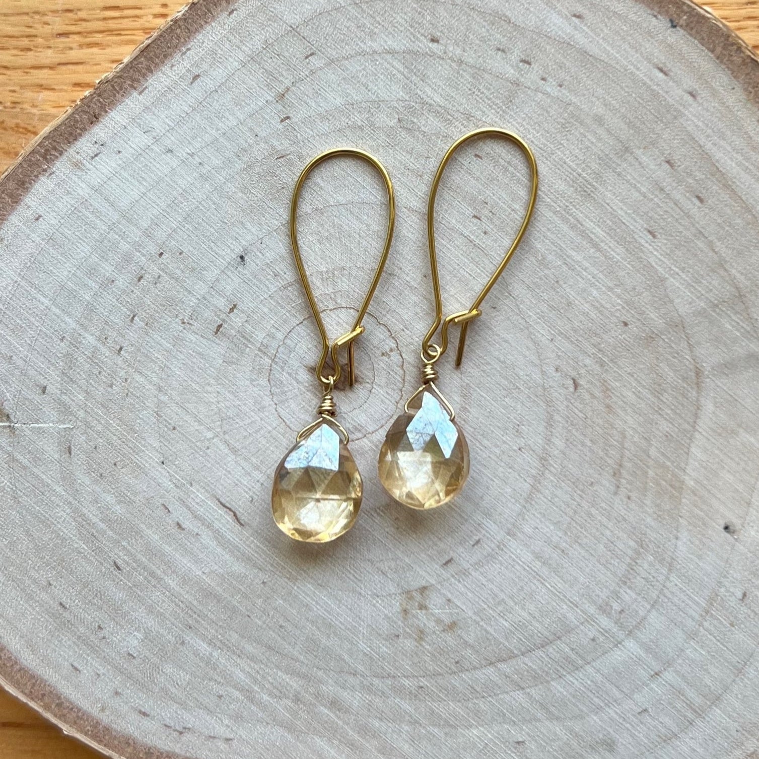 Semi precious gemstones paired with short gold kidney ear wire earrings.