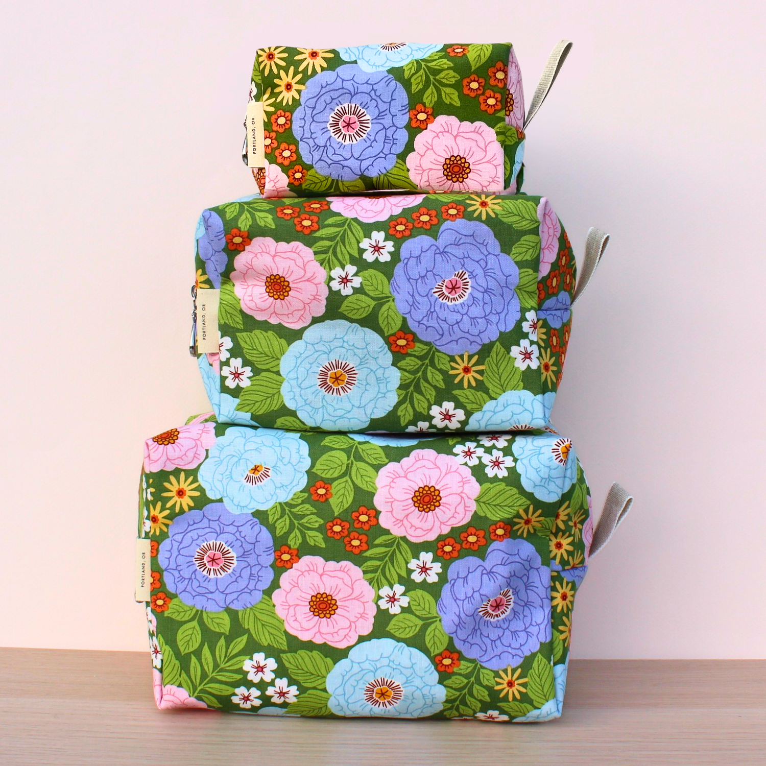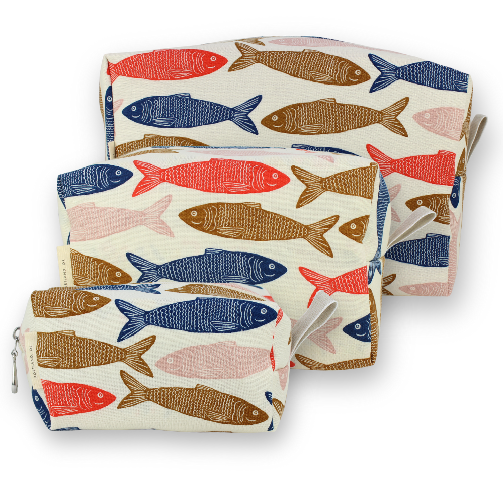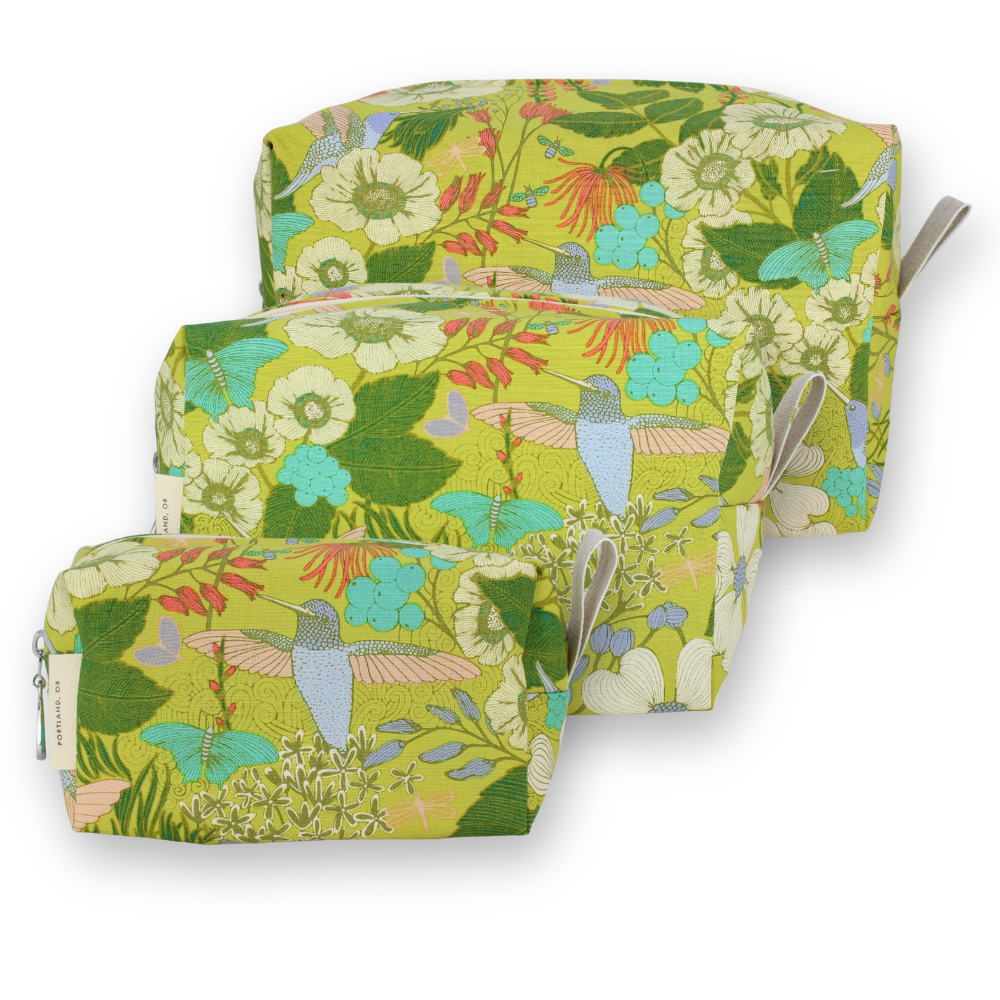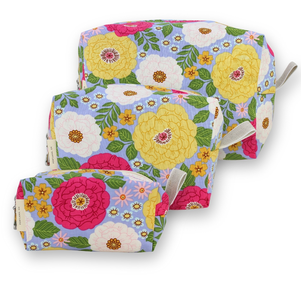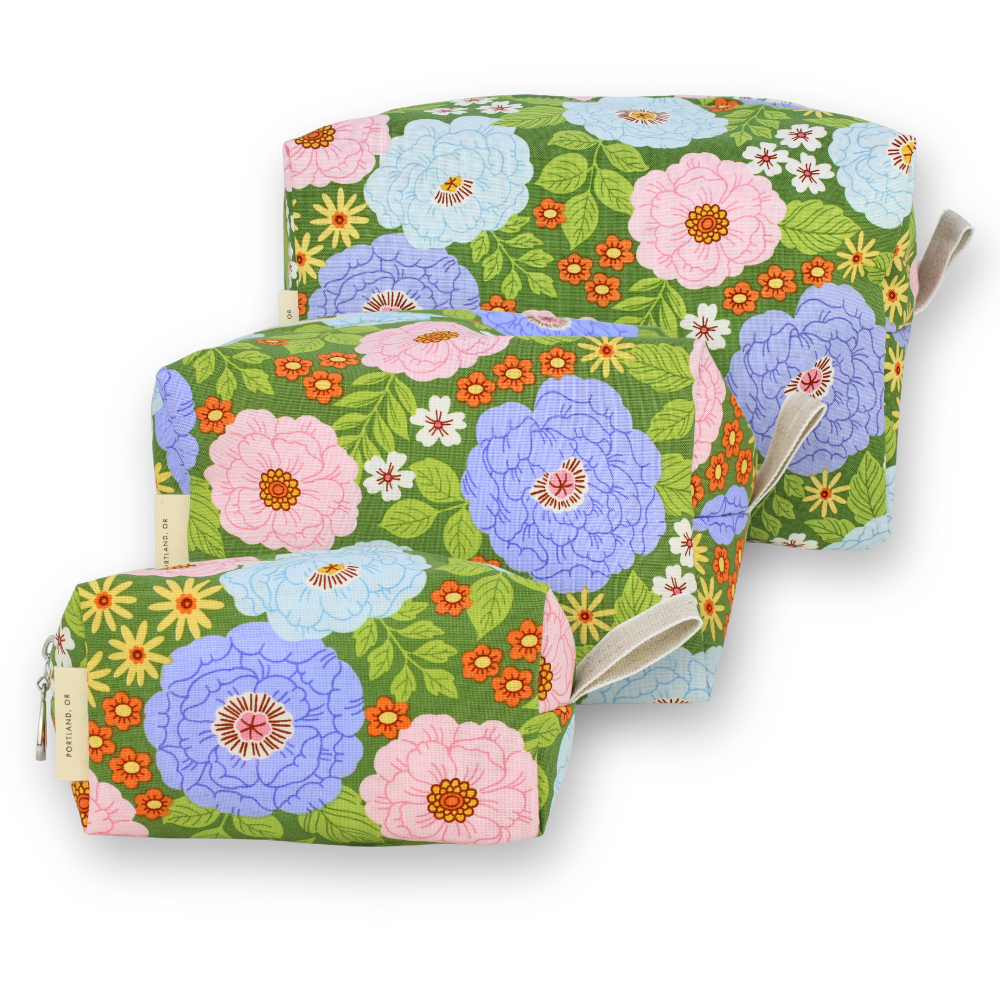 A full setĀ of ourĀ Dopp Kits, plastic-lined cosmetic bags in cuteĀ cotton prints. Perfect for travel or bathroom organizers! The set includes one small, one medium and one large and they can nest together for easy storage. For additional sizes, look at our Makeup Bags, the XL Makeup Bag, and the cotton coin purse!