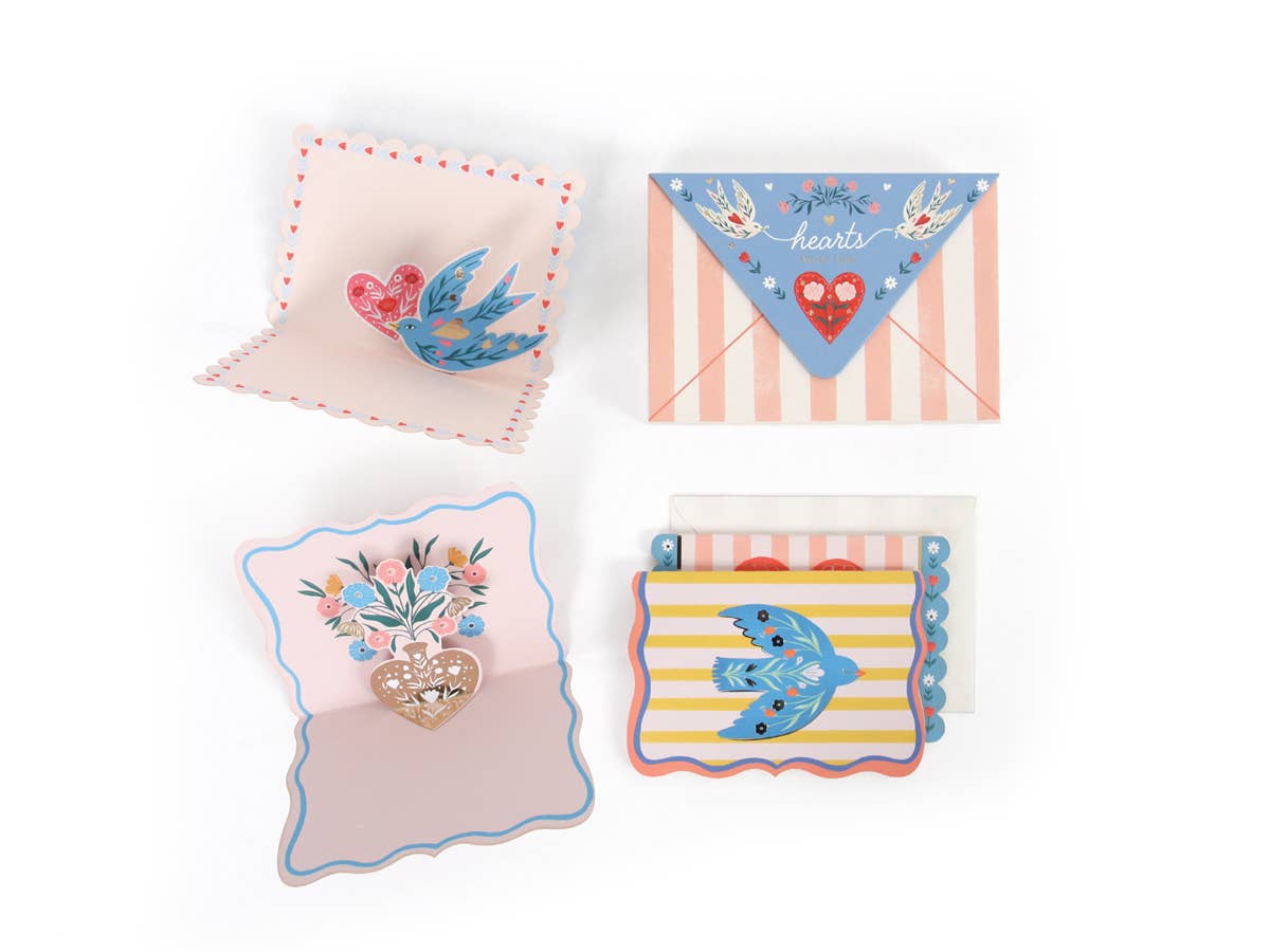 Boxed Blank Pop-Up Cards "Birds + Hearts"