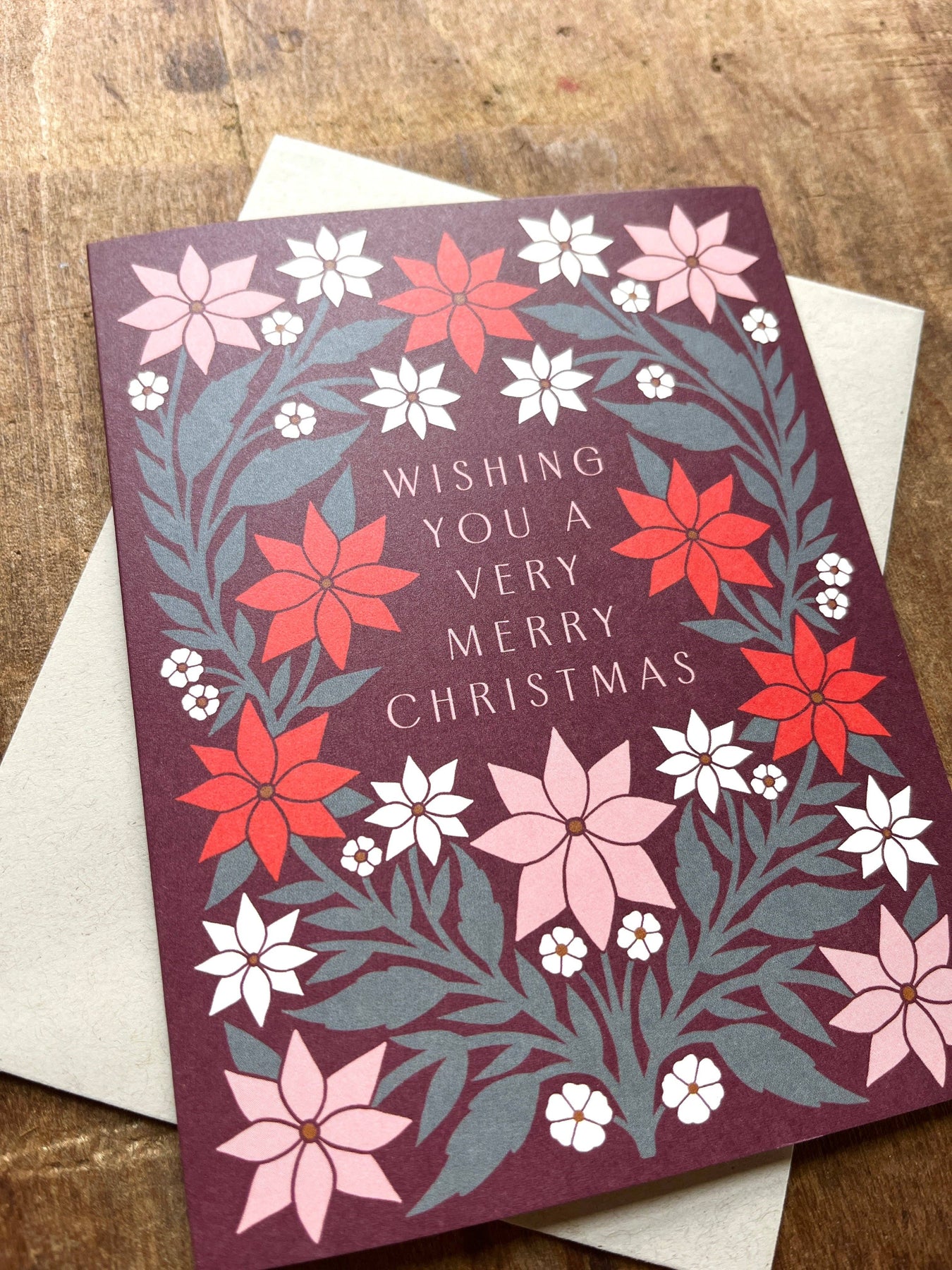 A Katharine Watson offset printed card, printed in Maine on 100lb cream cardstock with deep blue ink. Each card is a standard A2 size, 5 ½” by 4 ¼”, is blank on the inside, and comes with a neutral taupe envelope. For her offset printed cards, Katharine begins each greeting card design with a hand-carved linoleum block, sketch, or watercolor, which is digitally translated and later, individually printed by our local printing partners.
