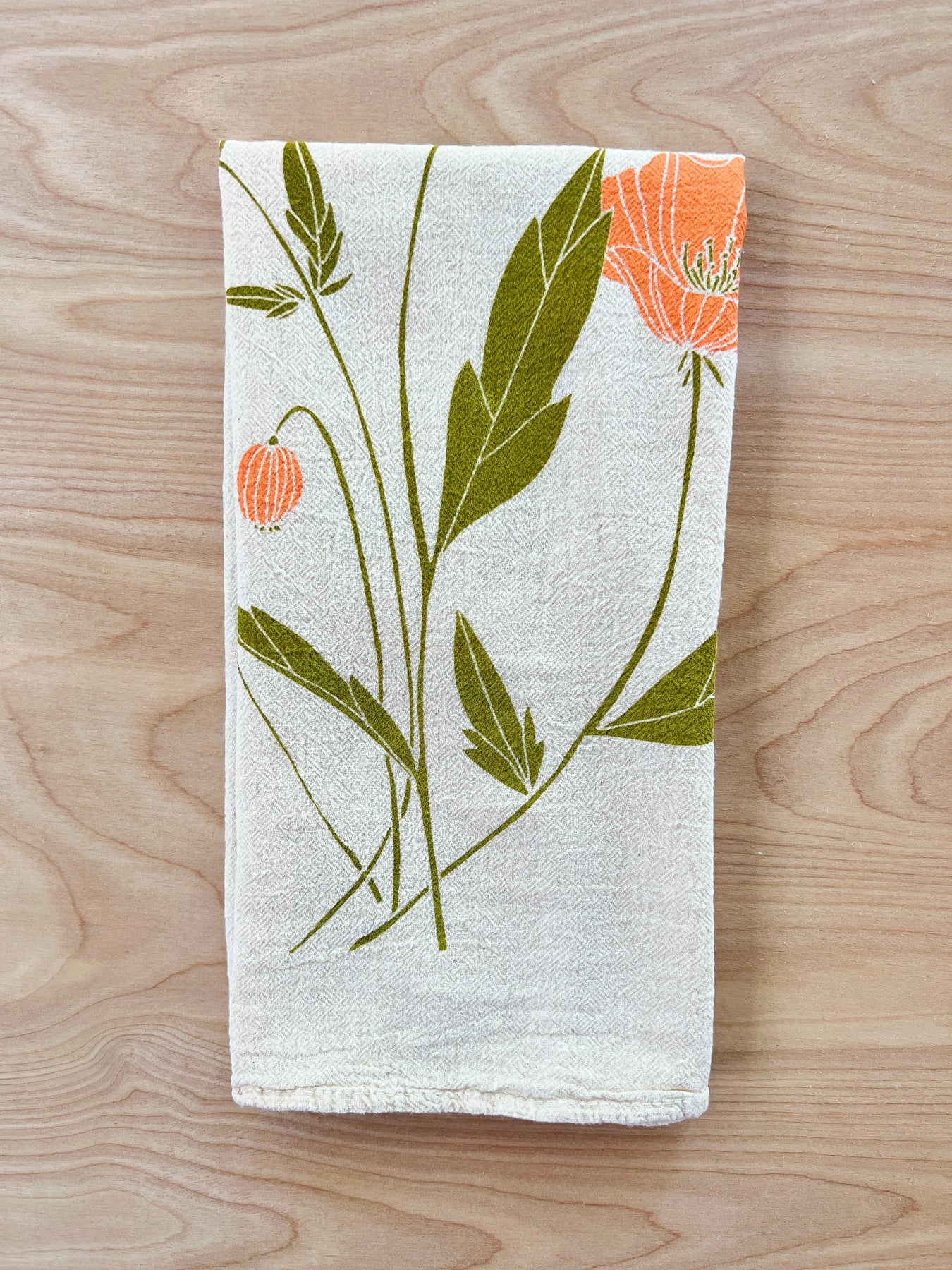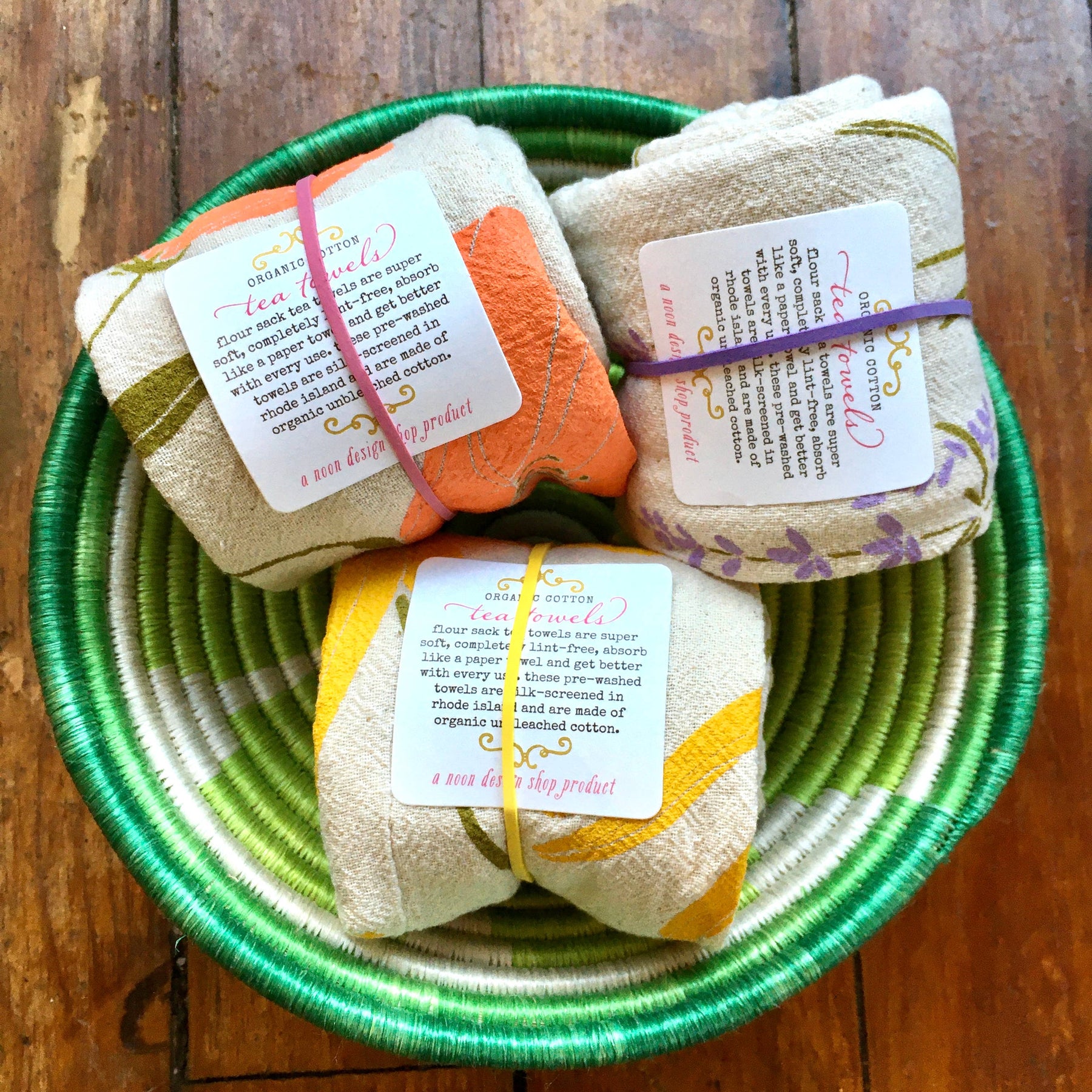 Made in America, machine washable, 28" x 29". Our Flour sack tea towels are super soft, completely lint-free, absorb like a paper towel, and get better with every use. These pre washed towels are silk screened (printed area 14.5"x14.5") on unbleached, 100% cotton from the mid-west.