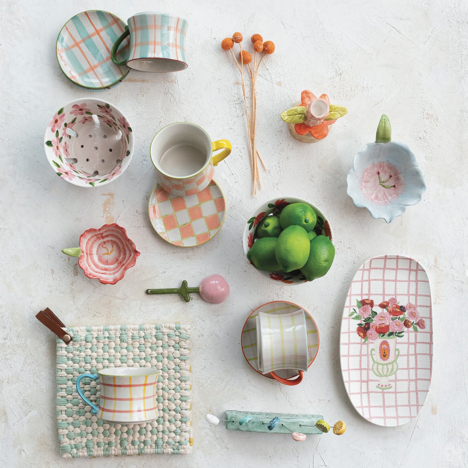 8 oz Hand Painted Stoneware Mugs