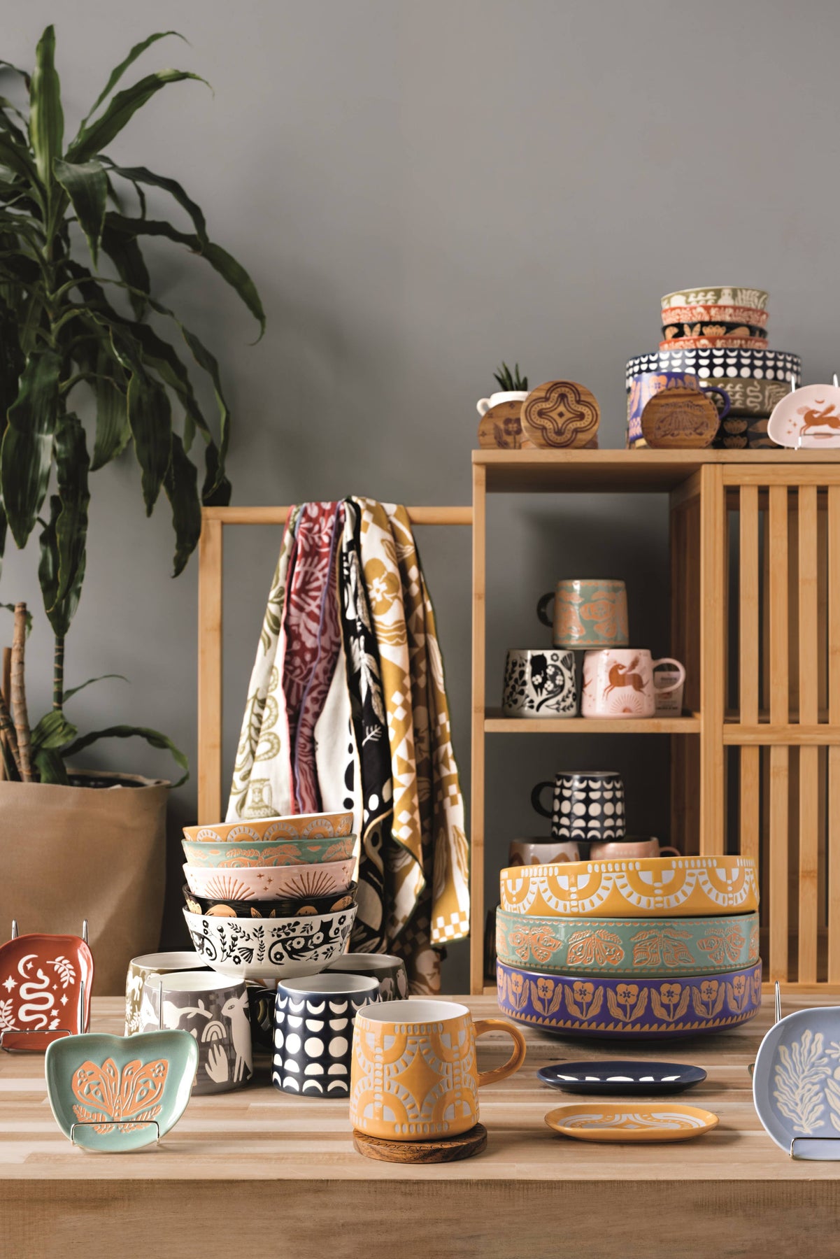 Our Teppi Imprint Mug features captivating motifs enhanced by raw glaze colors and textured ridges, skillfully revealed through the ancient art of wax-resist decoration. Relish the perfect and subtly imperfect nuances that only hand-rendered design can bring to your beverage experience.