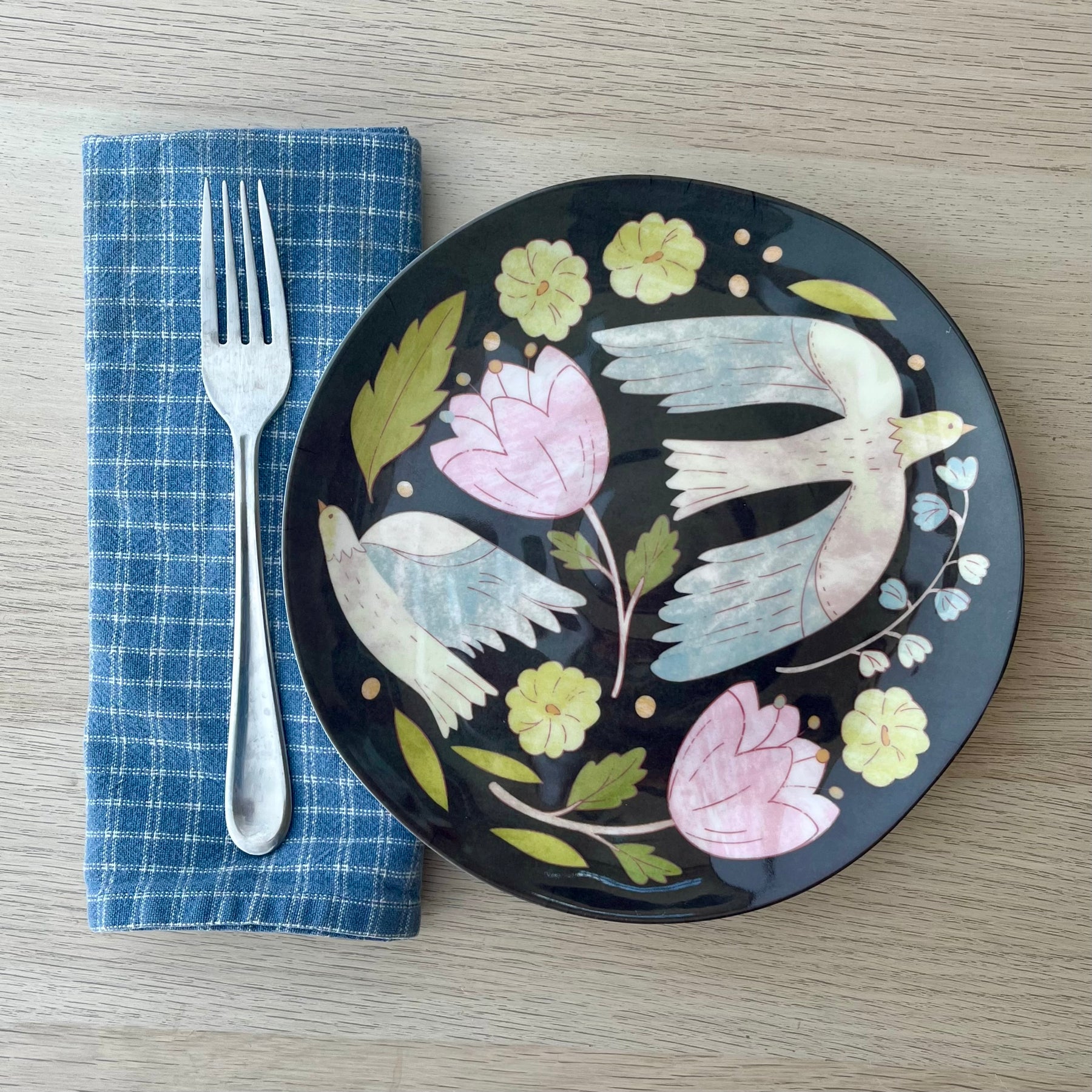 Melamine Bird + Floral Plates. Use as a plate or a cute tray.