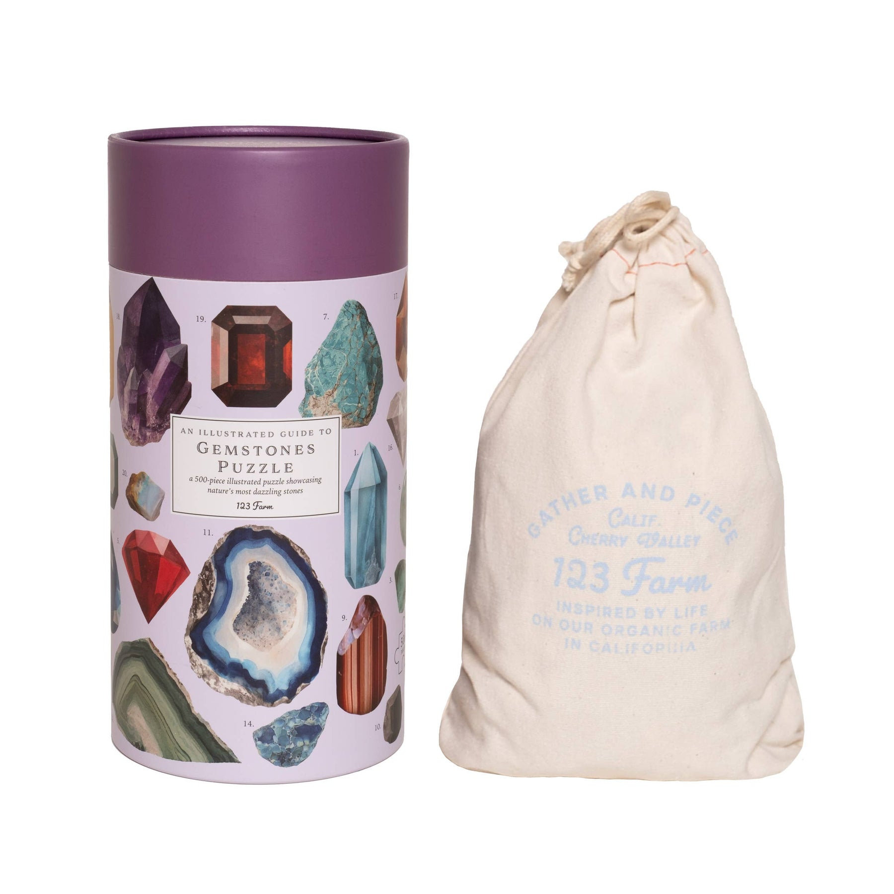 Enjoy assembling this beautiful 500 piece puzzle, designed with illustrations showcasing nature's most dazzling stones. Comes in a muslin drawstring back and includes an 8.5"x8" reference photo. 16.5"x22.5" | 41.9 cm x 57.2 cm