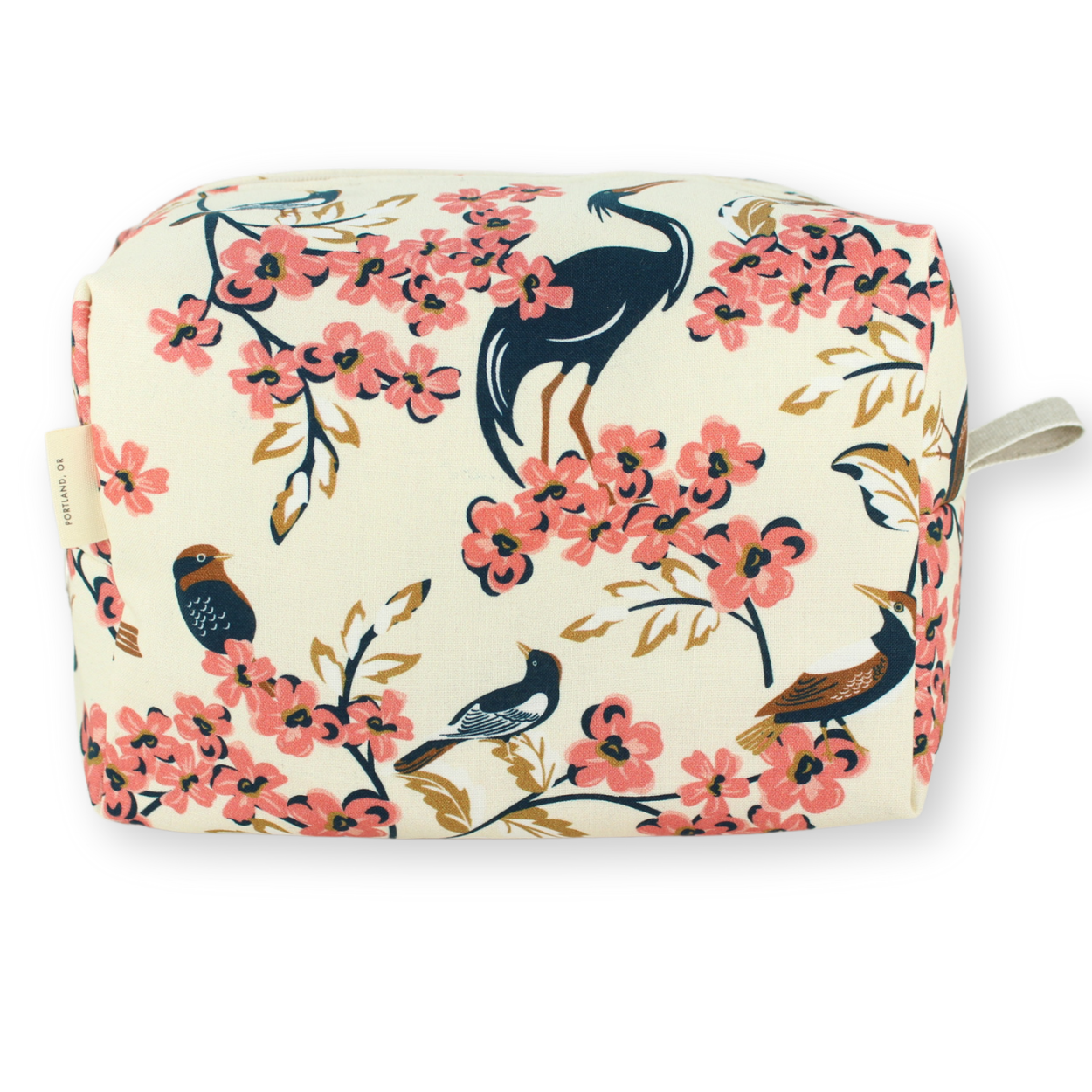 The biggest size of our Dopp Kits, a large plastic lined travel bathroom bag in a cotton print. For additional sizes, look at our other Dopp Kits, Makeup Bags, the XL Makeup Bag, and the cotton coin purse!