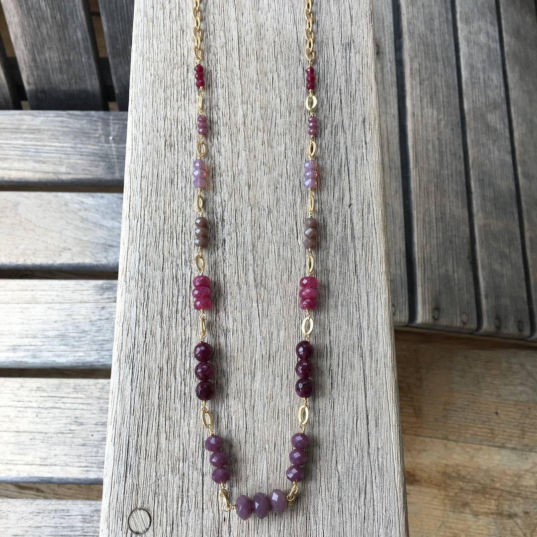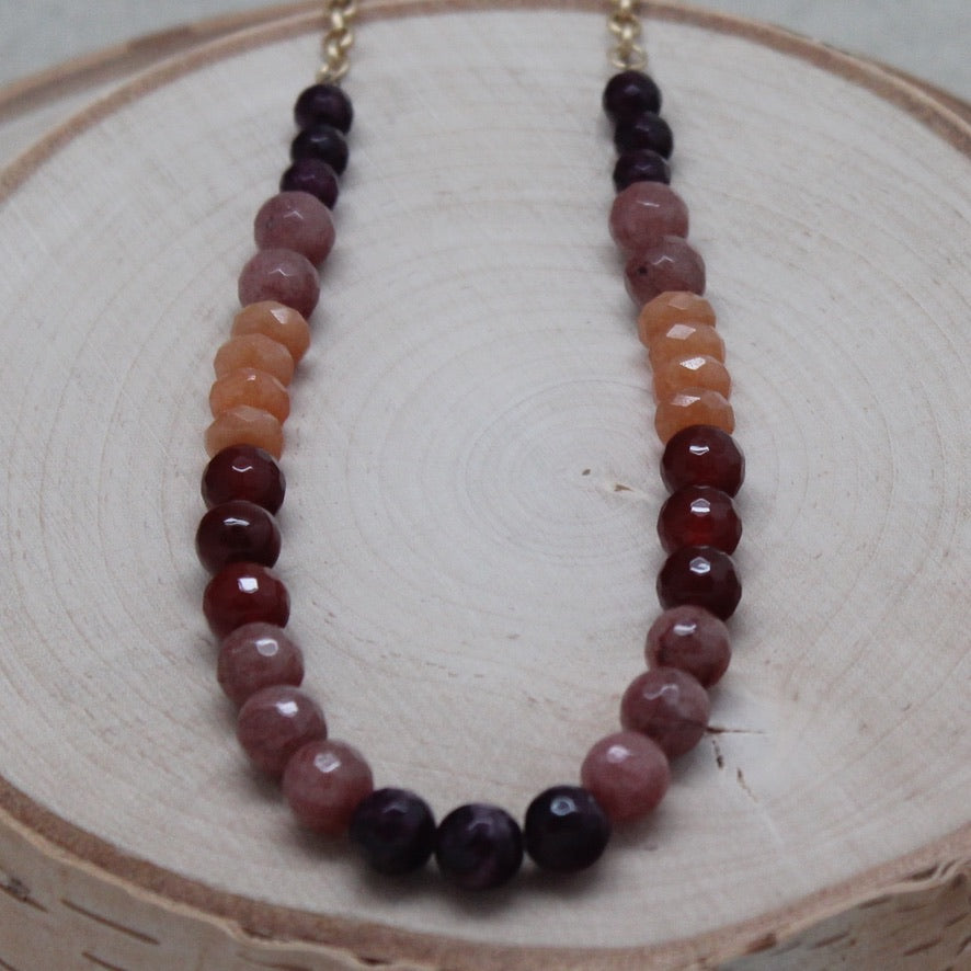 Purple Jade, Aventurine and Carnelian Gold Necklace | SALE