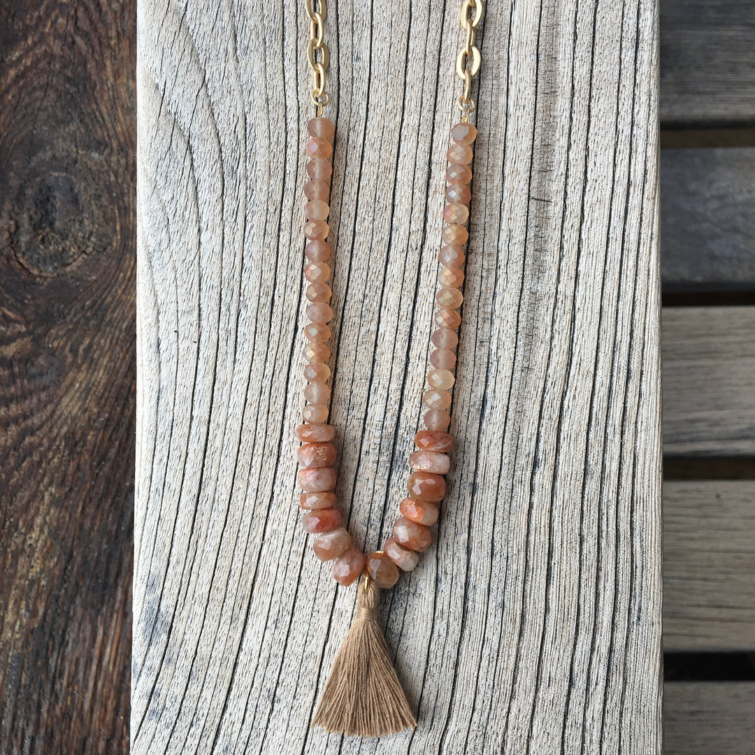 Crystal + Sunstone Tassel Gold Necklace | SALE