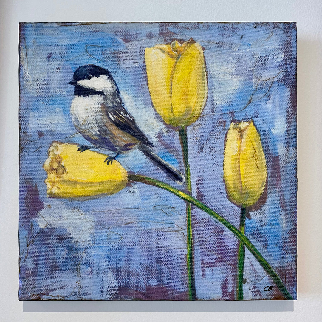 Art Plaque | Chickadee and Yellow Tulips