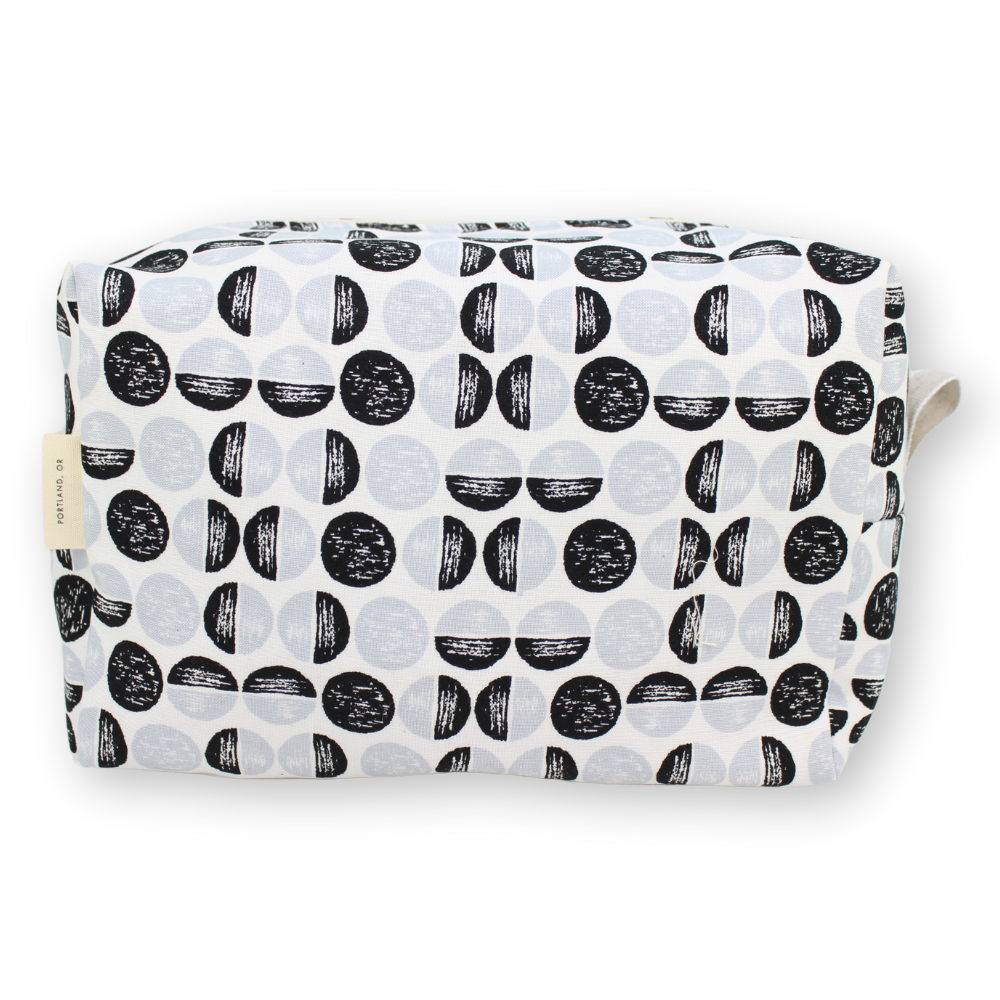The biggest size of our Dopp Kits, a large plastic lined travel bathroom bag in a cotton print. For additional sizes, look at our other Dopp Kits and the cotton coin purse!