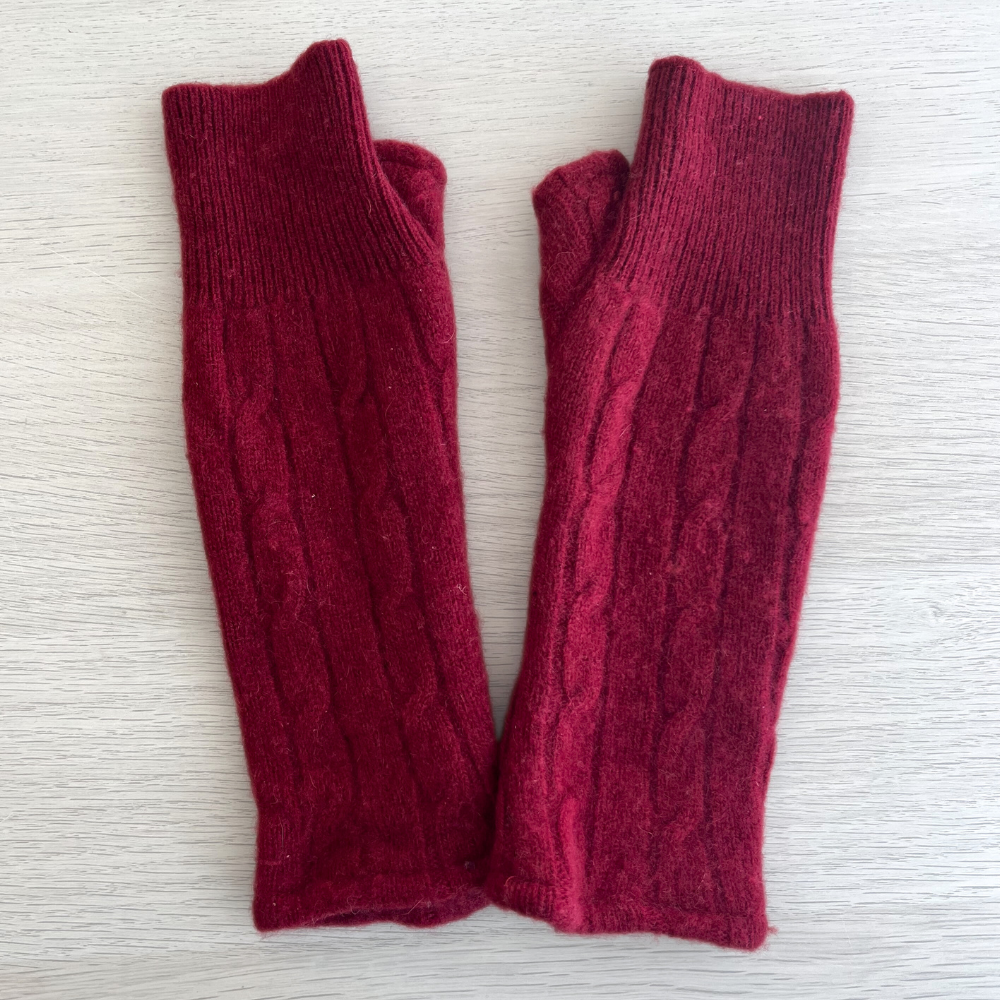 These are beautifully warm cashmere fingerless gloves. All gloves are individually made from super soft, lightly felted recycled cashmere so each pair is one of a kind. The open fingertop gives you the freedom to drive, text, knit, read, or drink coffee. Simply tuck your fingers inside if chilly!