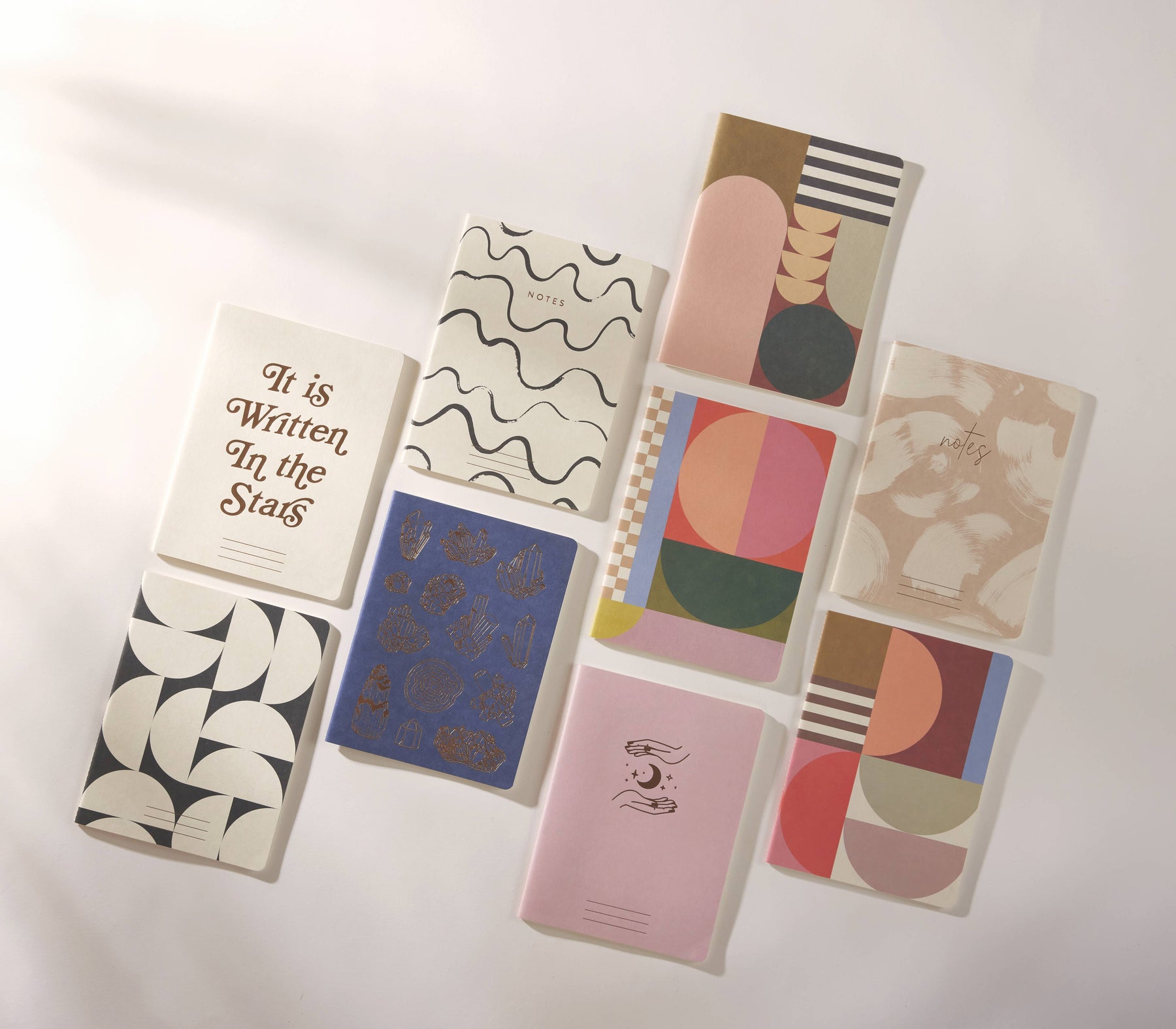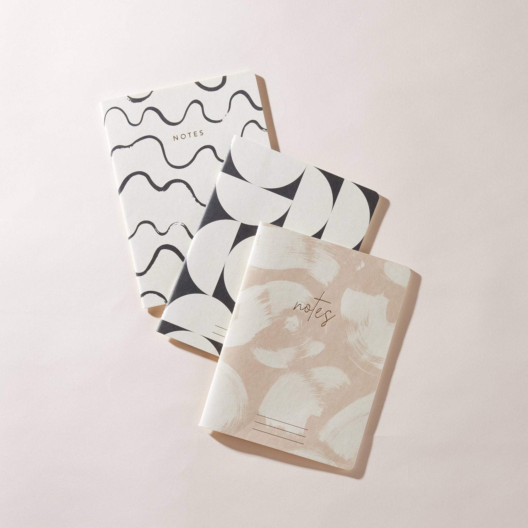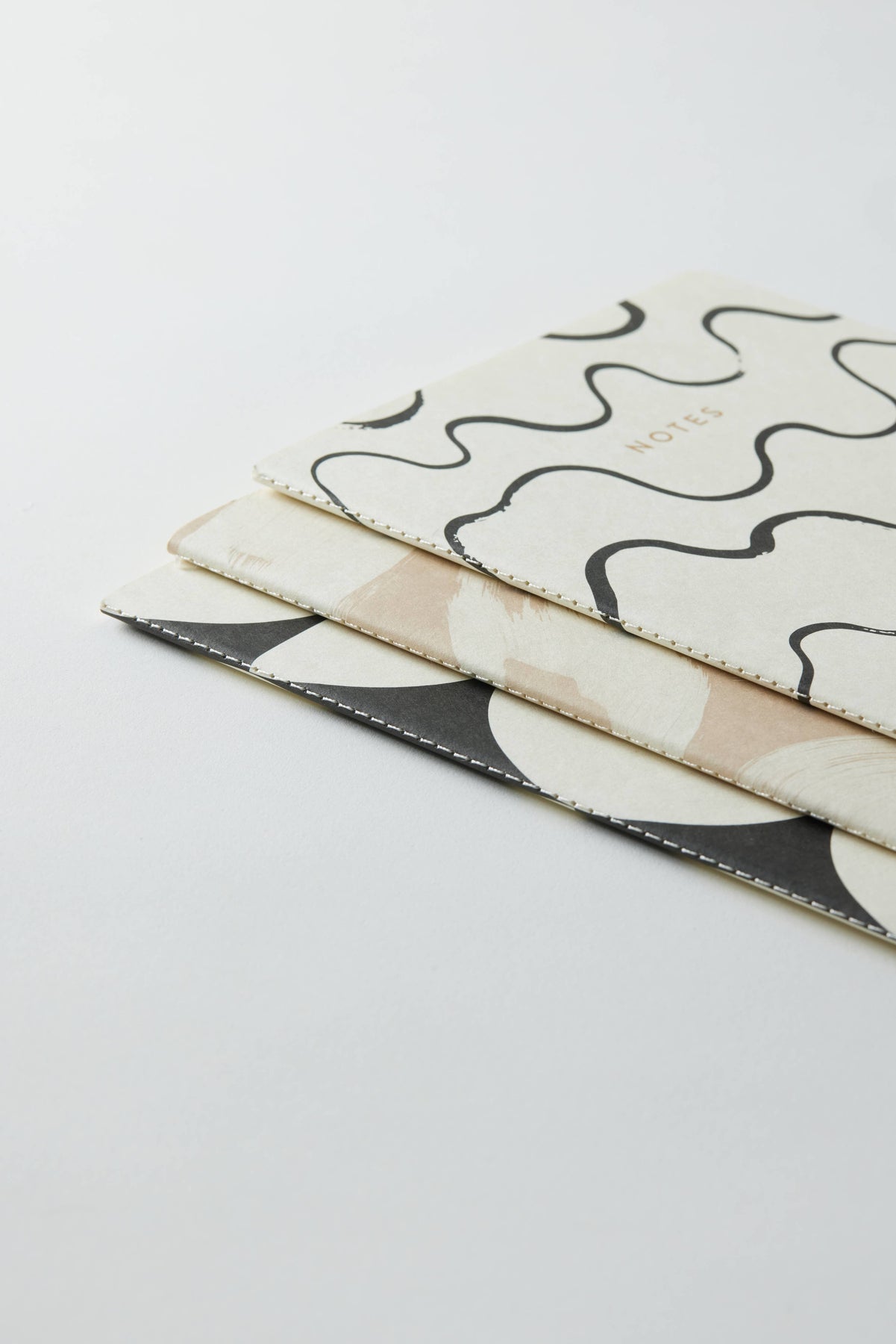 • Set of Three 6" w x 8" h Notebooks • 48 Pages Each • Stitched Binding • Printed with Soy Ink on 100 GSM Woodfree, Lignin-Free, Acid-Free Paper